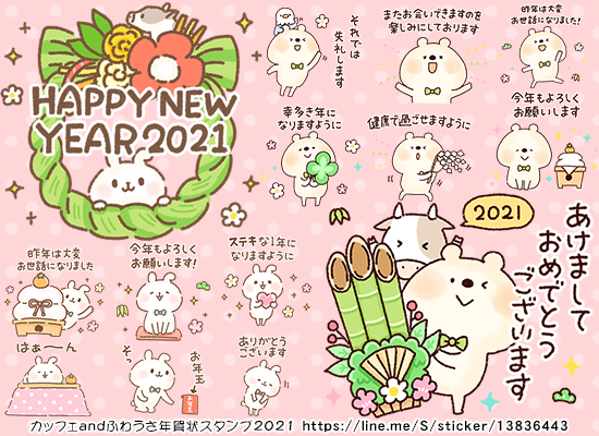 ラインスタンプ風 21年賀状 無料ダウンロード かくぬる工房